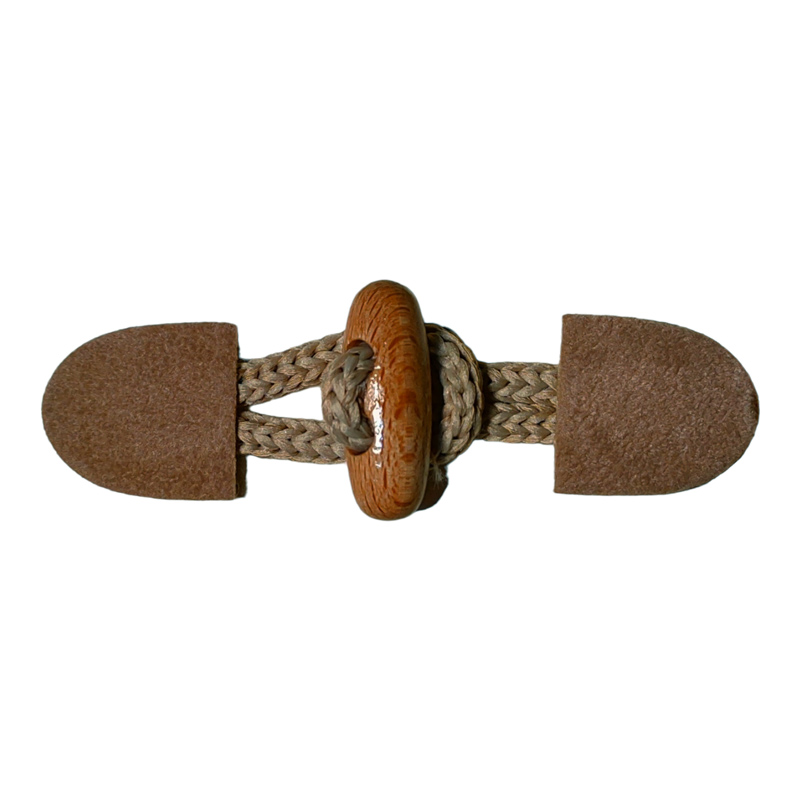 Το Κούμπωμα Montgomery Μπεζ 9,5 cm είναι το κλασικό διαχρονικό κούμπωμα για τις ζακέτες, τα παλτό και γενικά τα χειμερινά πανωφόρια. Το συγκεκριμένο κούμπωμα είναι ιδανικό για παιδικά ενδύματα λόγω του μικρού του μεγέθους. Το συνολικό του μήκος είναι 9,5 εκατοστά ενώ το ξύλινο κουμπί του είναι 3 εκατοστά. Είναι κατασκευασμένο από σουέτ δέρμα, ο βρόγχος του είναι από βαμβακερό κορδόνι και το κουμπί του είναι από ξύλο. Μπορεί πολύ εύκολα να ραφτεί σε πλεκτές παιδικές ζακέτες, καζάκες κ.α. αλλά και σε παλτό. Διατίθεται σε τέσσερα χρώματα μαύρο, καφέ, μπεζ και μπλε σκούρο. Κάθε συσκευασία περιέχει ένα κούμπωμα μοντγκόμερι.
