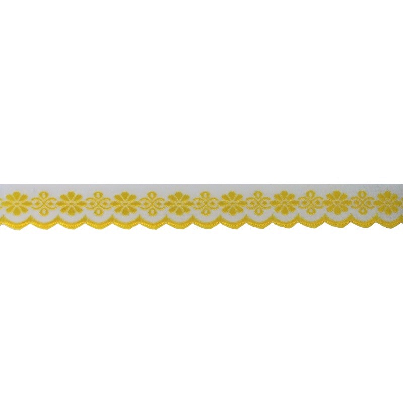 Η Τρέσα Βαμβακερή Κίτρινη 20 mm είναι μια πολύ όμορφη και ποιοτική τρέσα. Το σχέδιο της είναι με κίτρινες μαργαρίτες σε λευκό βαμβακερό ύφασμα, ενώ το τελείωμα της είναι με οβάλ μύτες. Είναι ιδανική να ραφτεί στο τελείωμα σε φούστες, μπλούζες, φορέματα, σεντόνια, τραπεζομάντηλα κ.α. Αναβαθμίστε τα ρούχα και τα υφάσματα σας, ράβοντας μια όμορφη τρέσα, χαρίζοντας τους ένα άρτιο οπτικά αποτέλεσμα. Το φάρδος της είναι 2 εκατοστά.